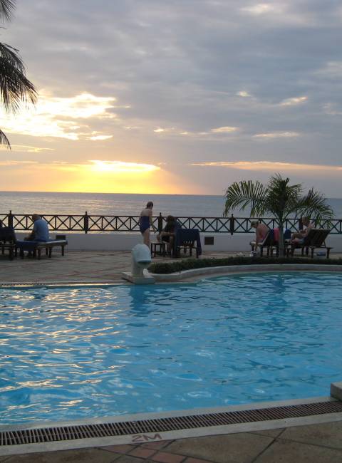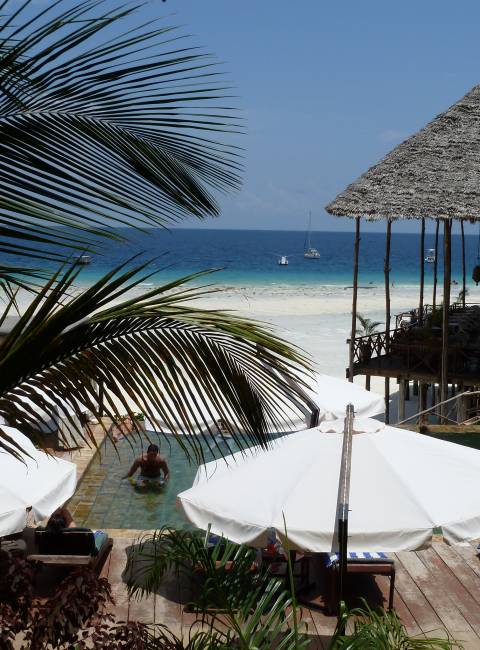 Pongwe Beach Hotel er et relativt nyåbnet hotel, beliggende stille ved en superb strand. Stilen er afslappet og atmosfæren i top. Hotellet er bygget i den traditionelle Zanzibar-stil med vægge af limvaskede koraller. Stranden har østkystens tidevand, men er ellers rigtig flot og fantastisk. Værelserne er gode med fan, myggenet og pæne badeværelser. En anden fordel er, at man er totalt afsondret fra andre turister – kort sagt, man har stranden for sig selv. Fantastisk! Se evt video her