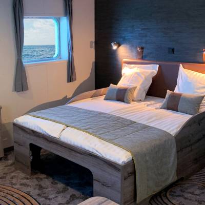Skibets bedste kahytter er uden tvivl Superior kahytterne, der ligger over dækket og har både flotte, store vinduer, en lækker dobbeltseng og en flot, stilren indretning.