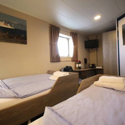 Rejser I to sammen, og vil I gerne have en privat kahyt med et godt lysindfald, kan I overveje at opgradere kahytten til en tosengs kahyt med et stort vindue.