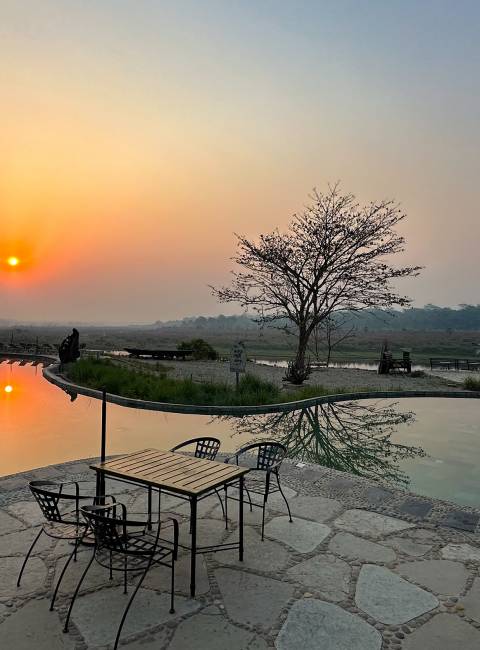 Beliggenhed, beliggenhed og beliggenhed er der noget, der hedder. Og her ligger Tiger Mountain Pokhara Lodge eminent på en bjergkam uden for Pokhara ved Royal Trek.