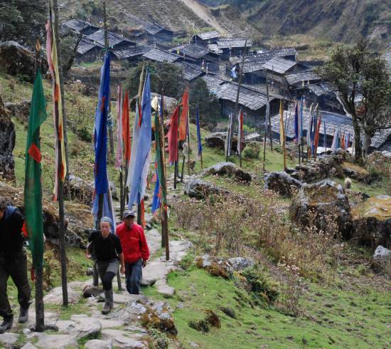 Læs mere herLumbasumba bjergpasset ligger mellem verdens 3. største bjerg, Kanchenjunga, og 5. største bjerg, Makalu. Trekket udgør den østligste sektion af Great Himalayan Trail.